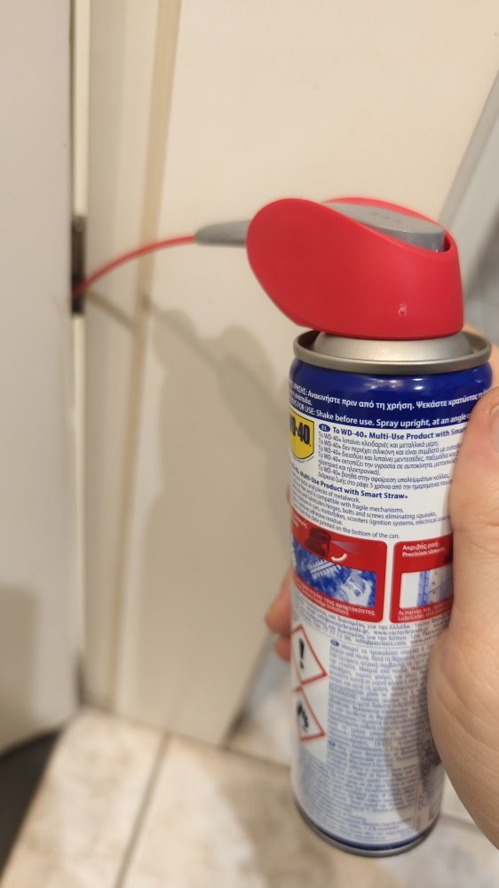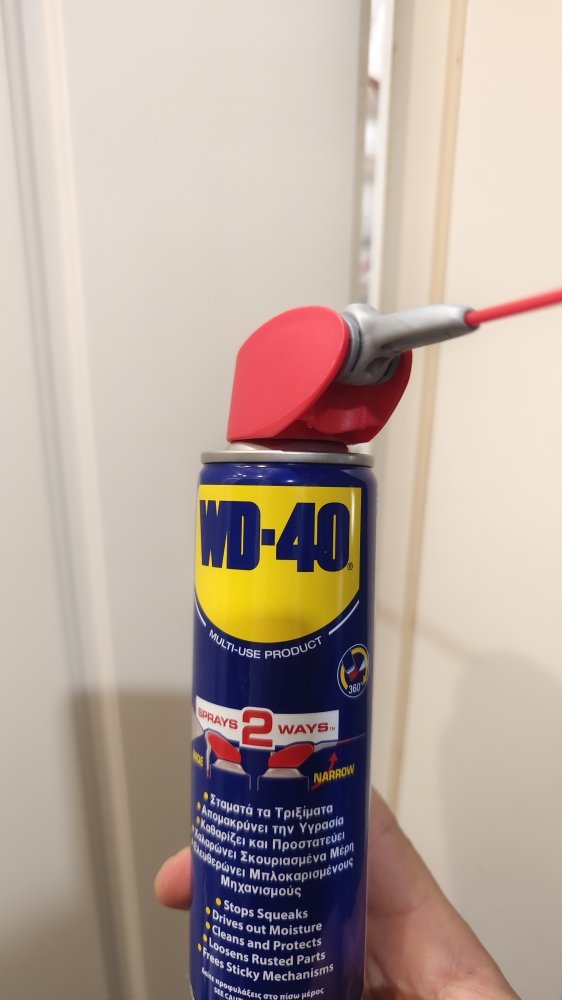 Μετά από 2 απλά ψεκάσματα με WD-40 στους δύο μεντεσέδες, το τρίξιμο και ο τρόμος σταμάτησαν!