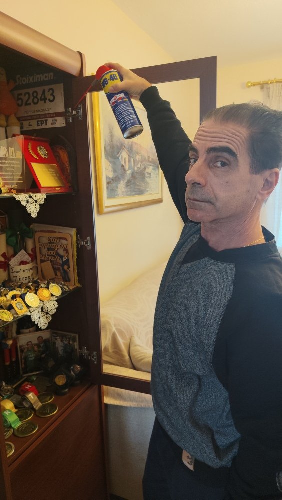 Λιπαινουμε και φροντίζουμε τους μεντεσέδες της ντουλάπας με WD40.
